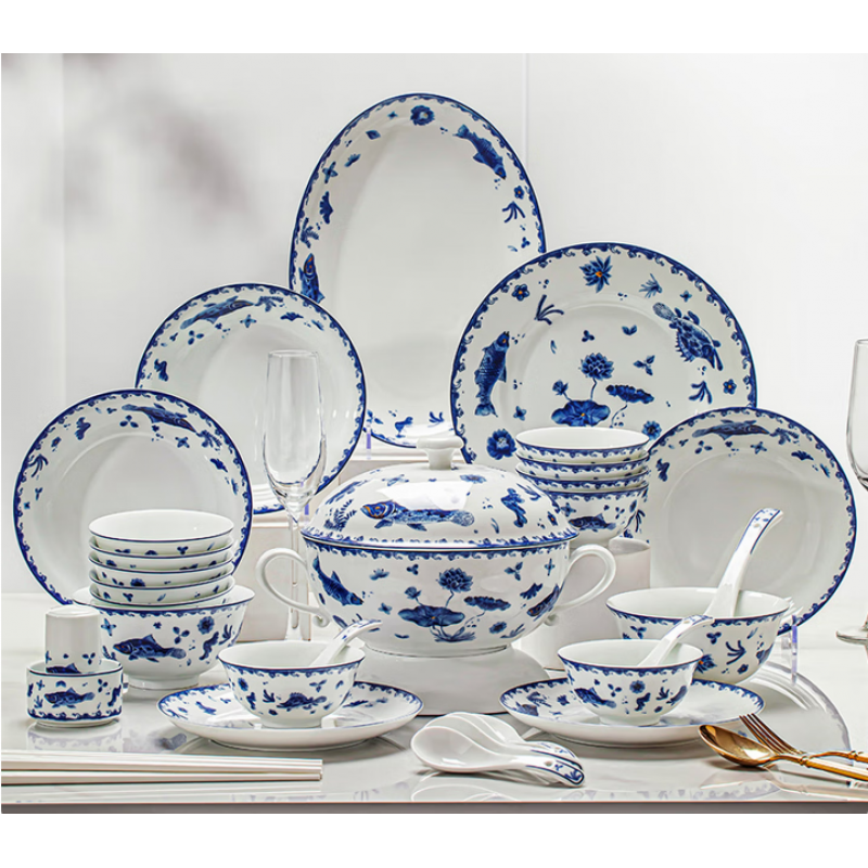 Jingdezhen High White Porcelain Bowl Plate Tableware Set - 68-Piece Dinnerware Set