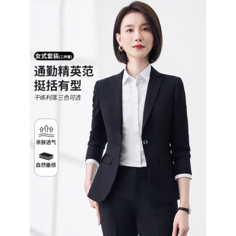 Women's blazer professional suit set casual workwear solid color slim fit suit